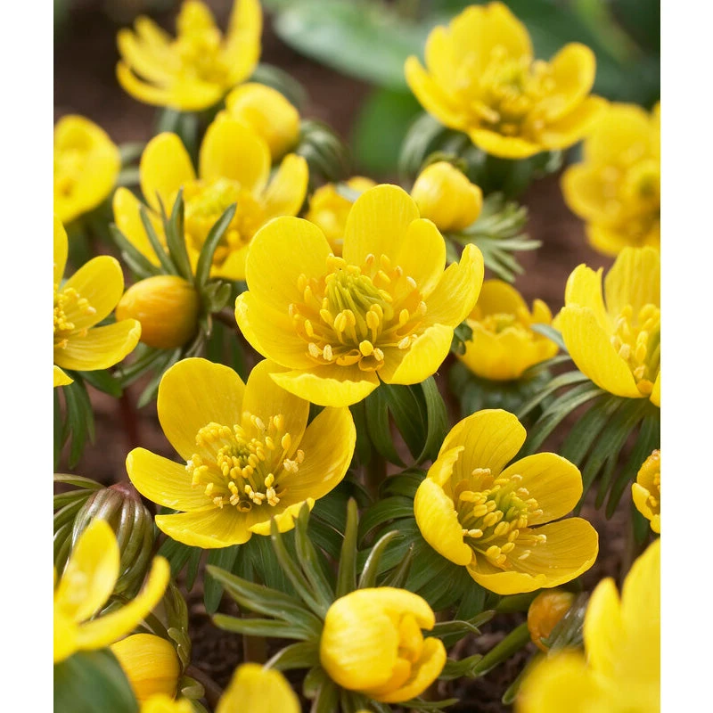 Collection of the following bulbs to create a mass of yellow blooms: Eranthis cilicica, Crocus Golden Yellow, Hyacinthus Gipsy Princess, Allium moly