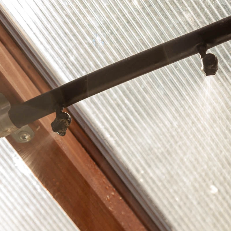 For Misting Greenhouse Seedlings Install these misting emitters anywhere you need an extremely fine spray on delicate seedlings or plants, or to create high humidity. Attach to 1/2″ poly tubing using 1/4″ couplers and 1/4″ poly tubing, or directly onto the side of 1/2″ tubing.