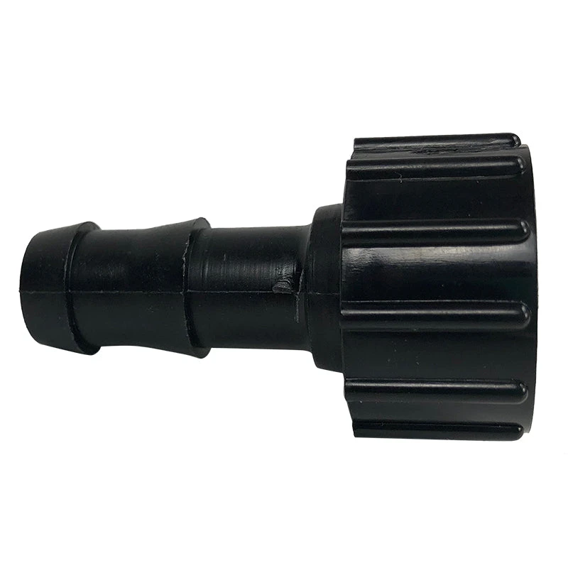 If starting soaker hose run directly off your spigot (rather than poly tubing), use this fitting. Secure the barbed end into the hose with a metal hose clamp (IRC607) to assure no blow off or leakage.