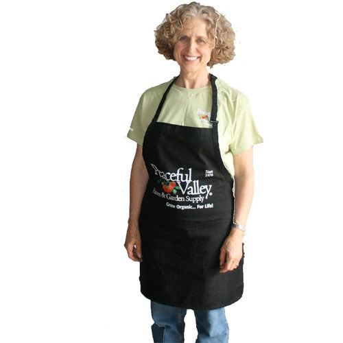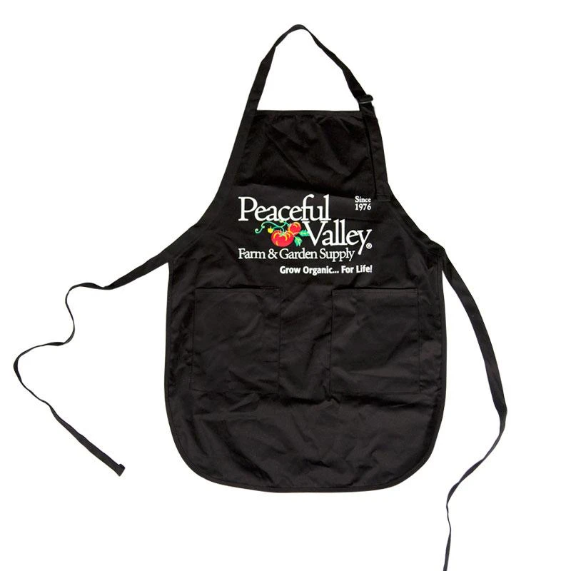 - Black cotton canvas with the Peaceful Valley logo in full color
