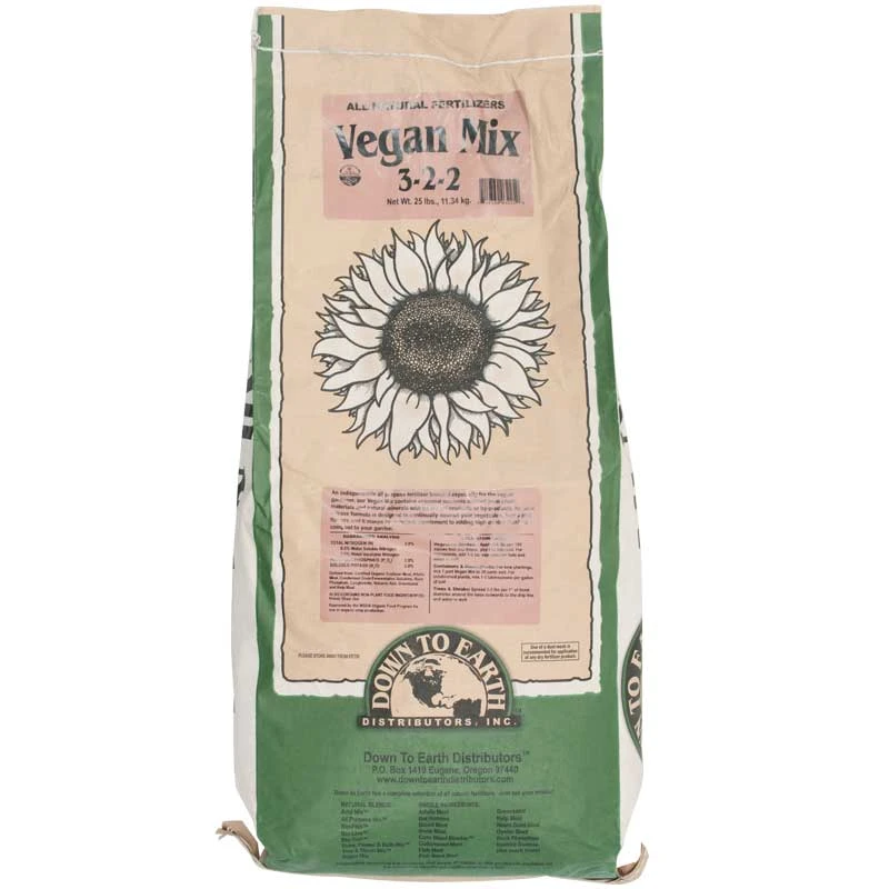 An indispensable all purpose fertilizer blended especially for the vegan gardener, our Vegan Mix contains essential nutrients derived from plant materials and natural minerals with no animal products or by-products. Its slow release formula is designed to continually nourish your vegetables, herbs and flowers and it makes an excellent supplement to adding high quality finished compost to your garden.